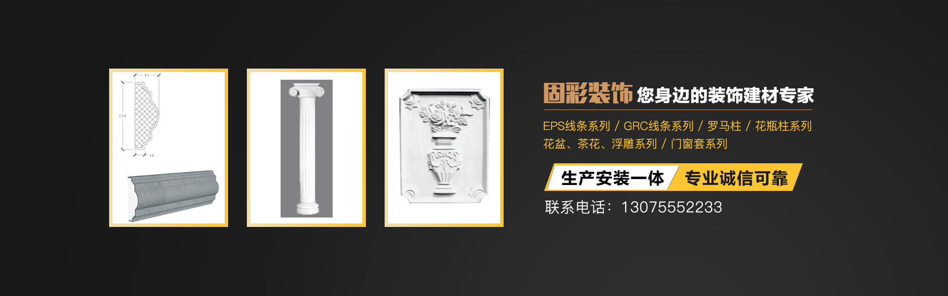 推薦廠家:合肥固彩新型建材公司,公司多年生產(chǎn)EPS裝飾線條,擁有目前較先進(jìn)的流水線生產(chǎn)設(shè)備,集研發(fā)、生產(chǎn)、加工、銷(xiāo)售、安裝為一體。而且擁有一...